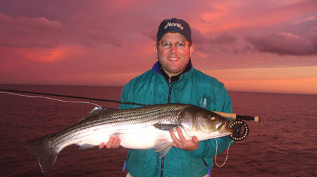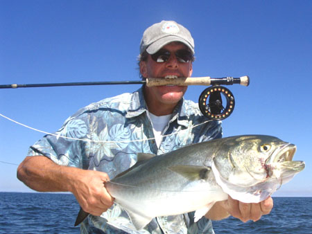 6/2/07 Jim Moore, a freshwater fly guy, got a little salty on Mt. Hope Bay