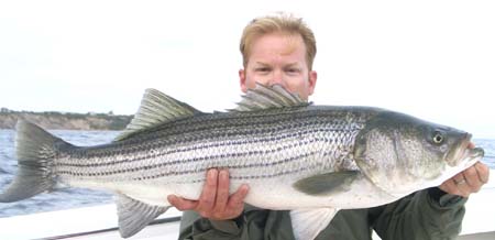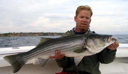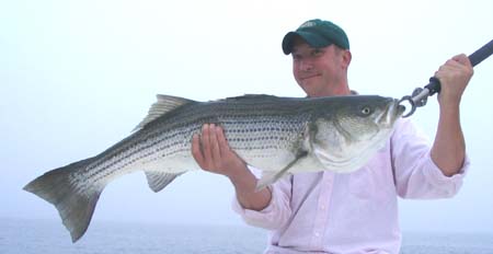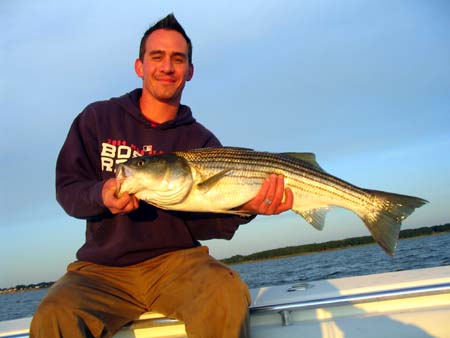 6/9/2007 Chris took this nice striper on the west side of BI.